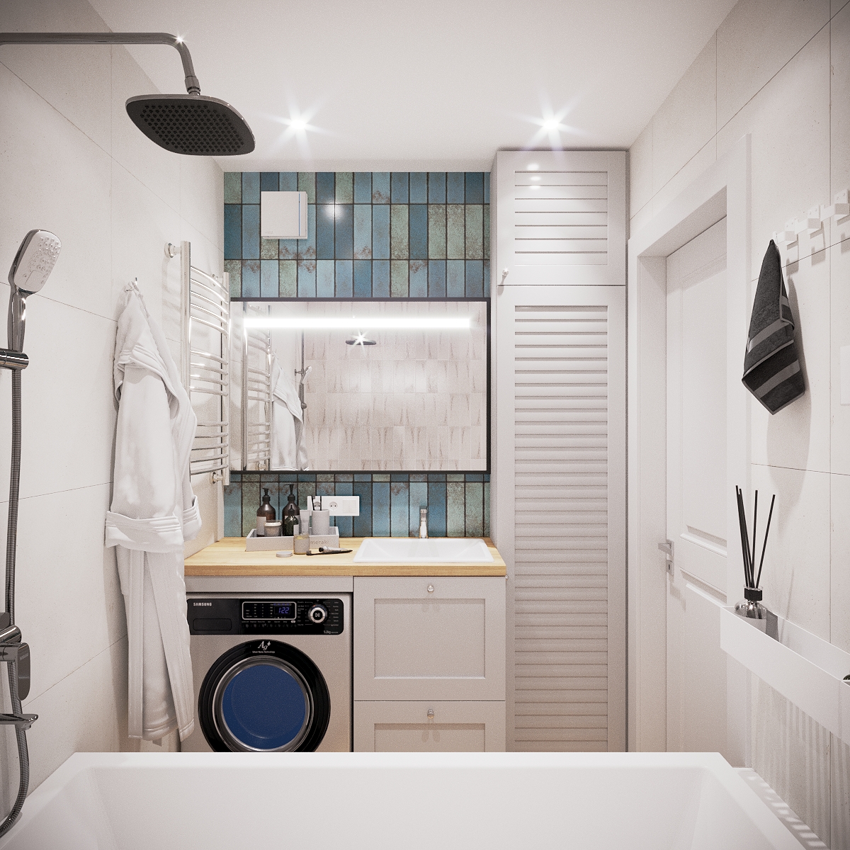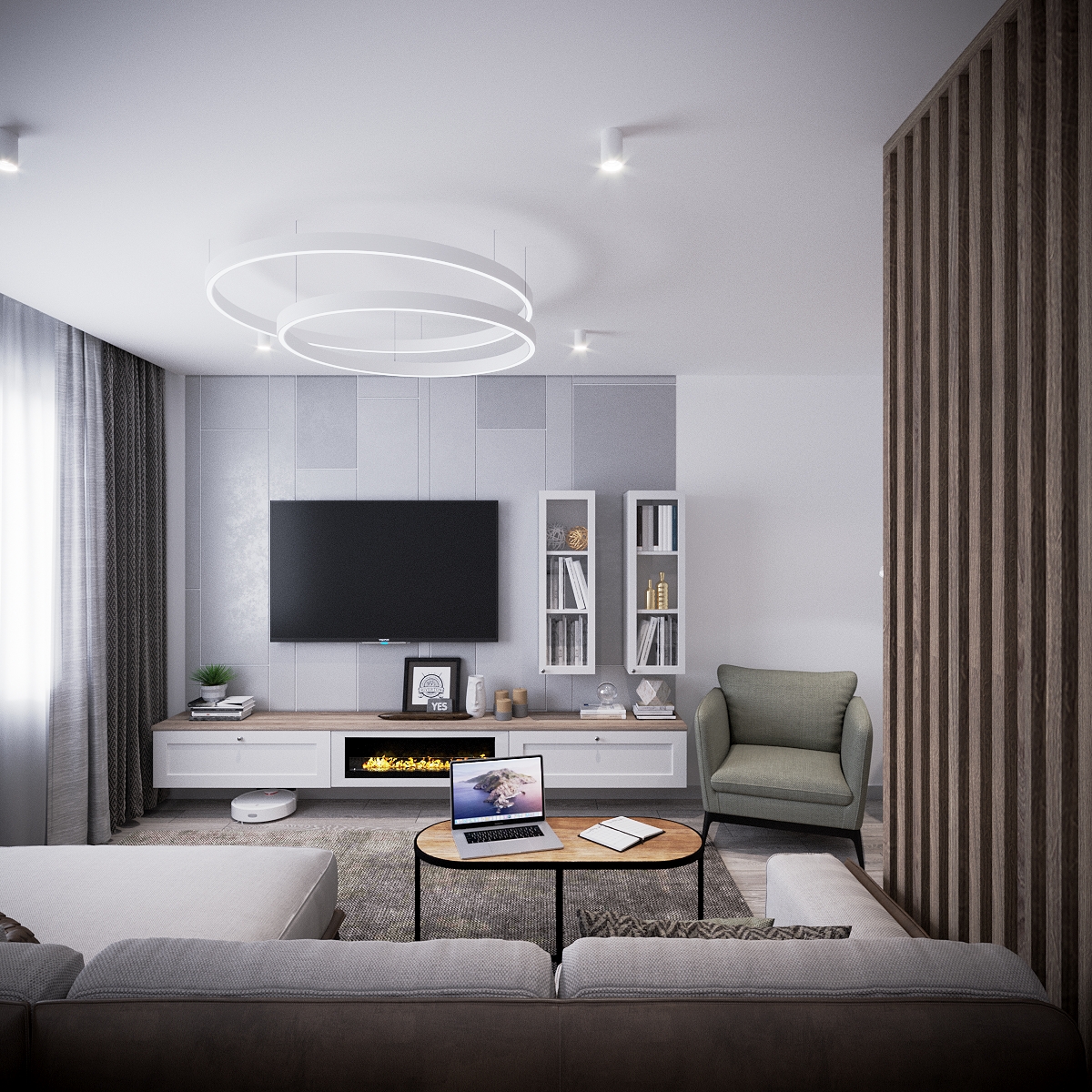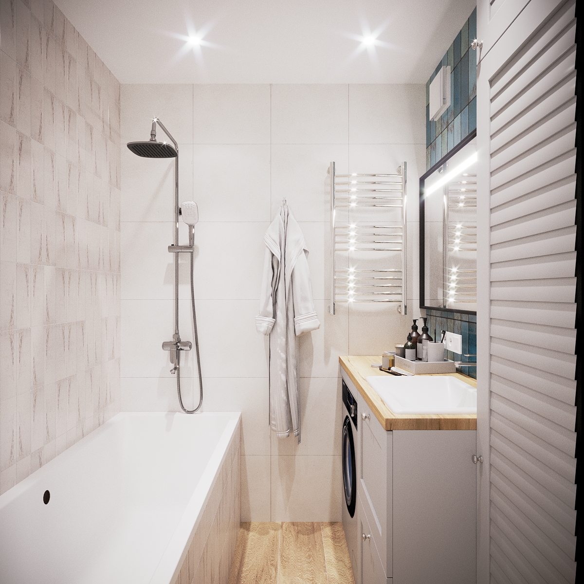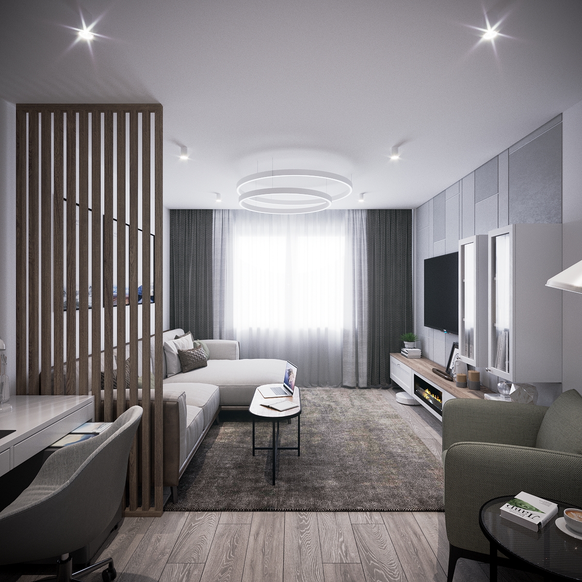 A modern apartment where simplicity becomes elegance. Neutral colors and clean forms shape the living areas, while carefully chosen lighting adds sophistication. Every element is designed to maximize comfort and style in a compact layout.