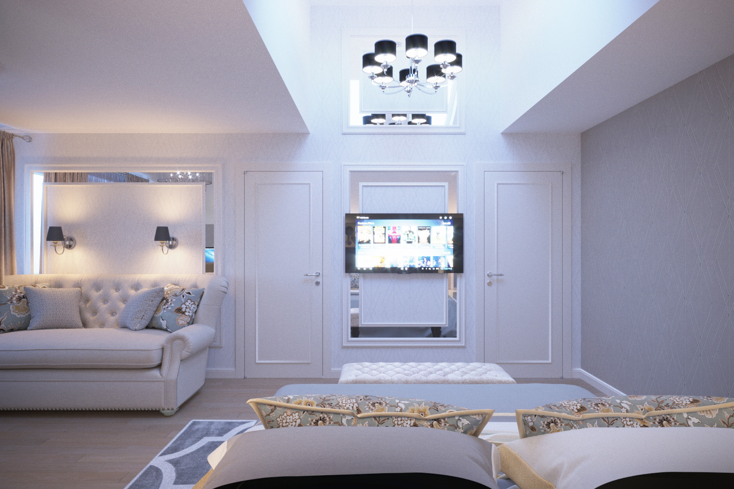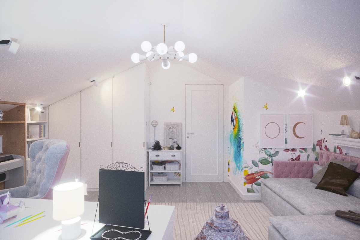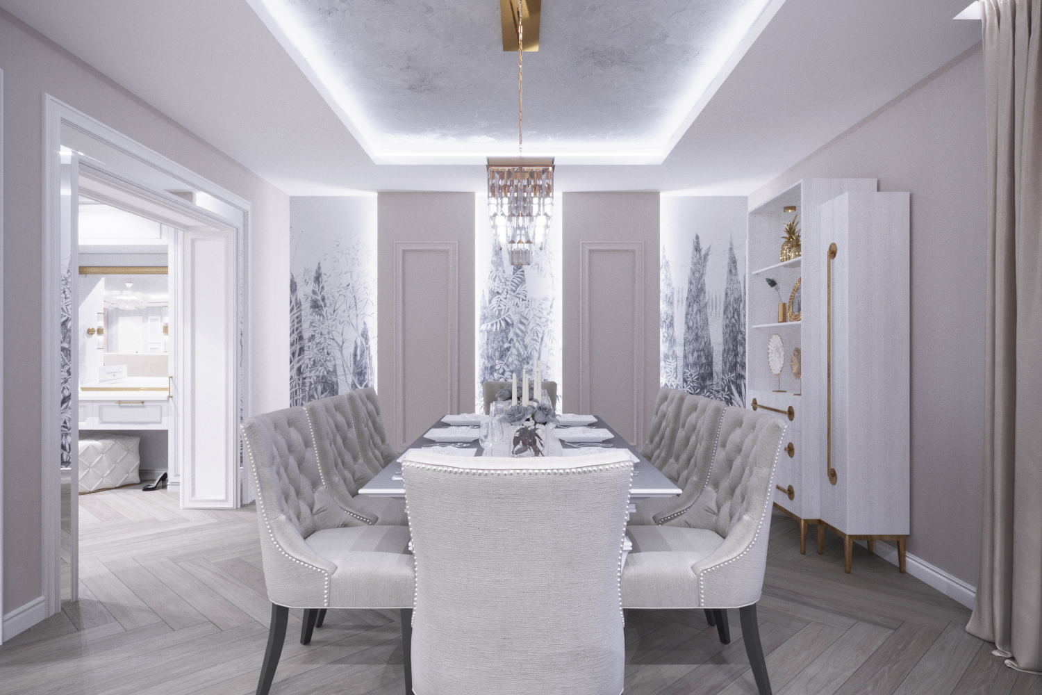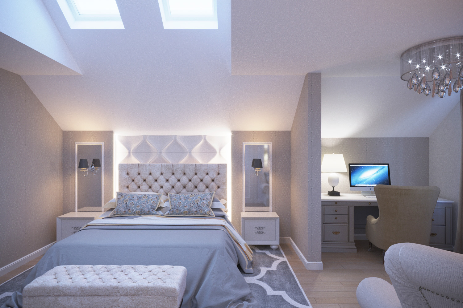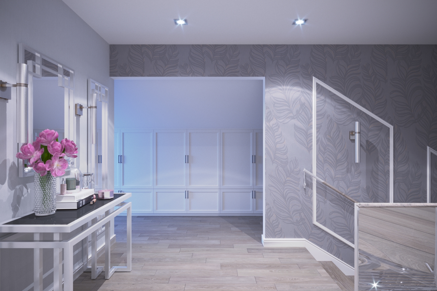 This renovation project gave a private house a new life with a redesigned attic floor. The interior embraces modern classic style with accent wallpapers, ceiling and wall lighting, and a carefully curated decorative palette. The result is a sophisticated and comfortable home that balances tradition and modernity.