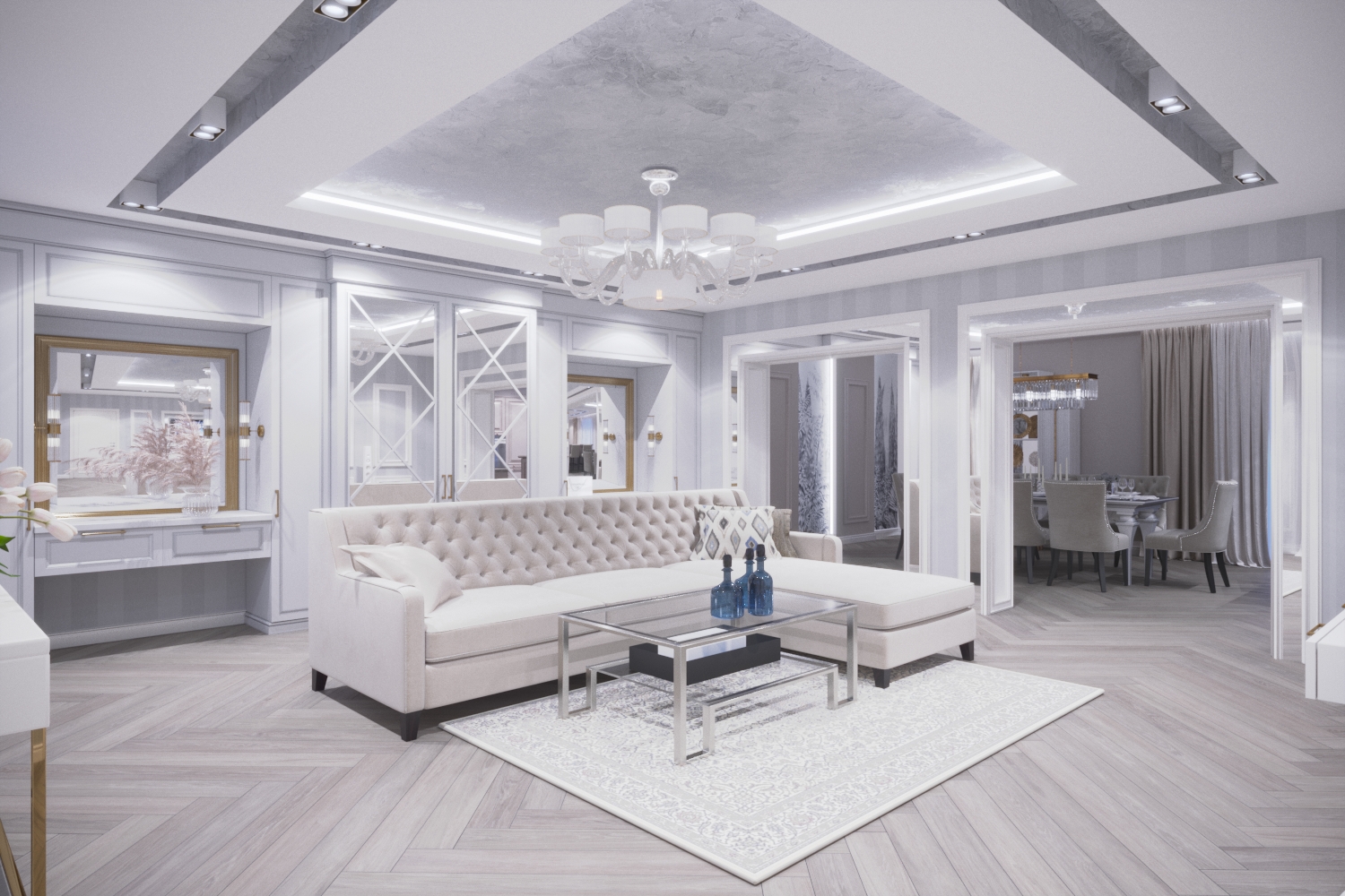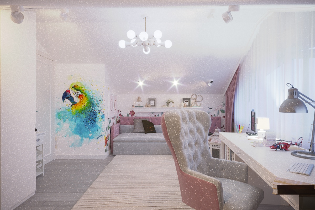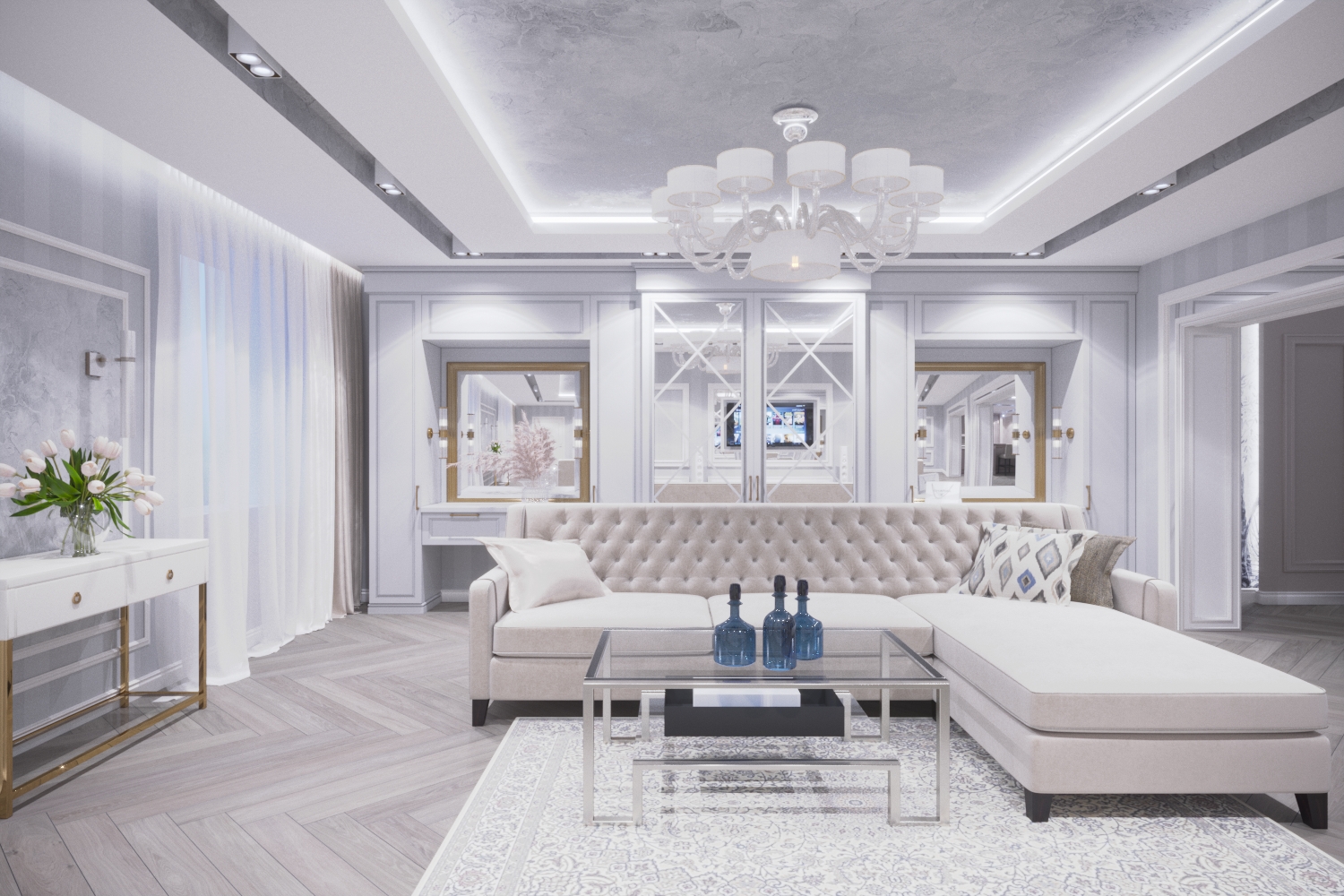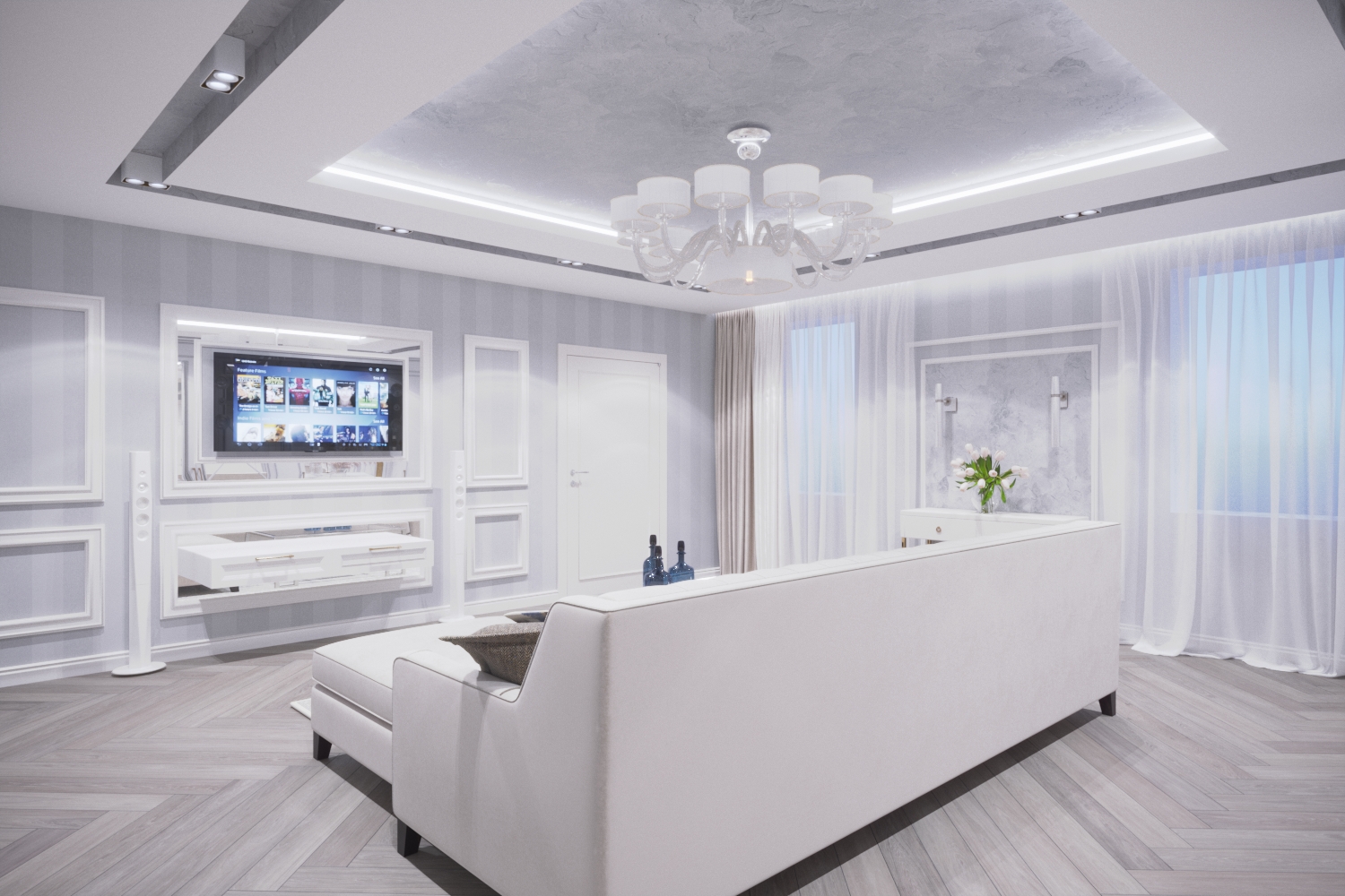 This renovation project gave a private house a new life with a redesigned attic floor. The interior embraces modern classic style with accent wallpapers, ceiling and wall lighting, and a carefully curated decorative palette. The result is a sophisticated and comfortable home that balances tradition and modernity.