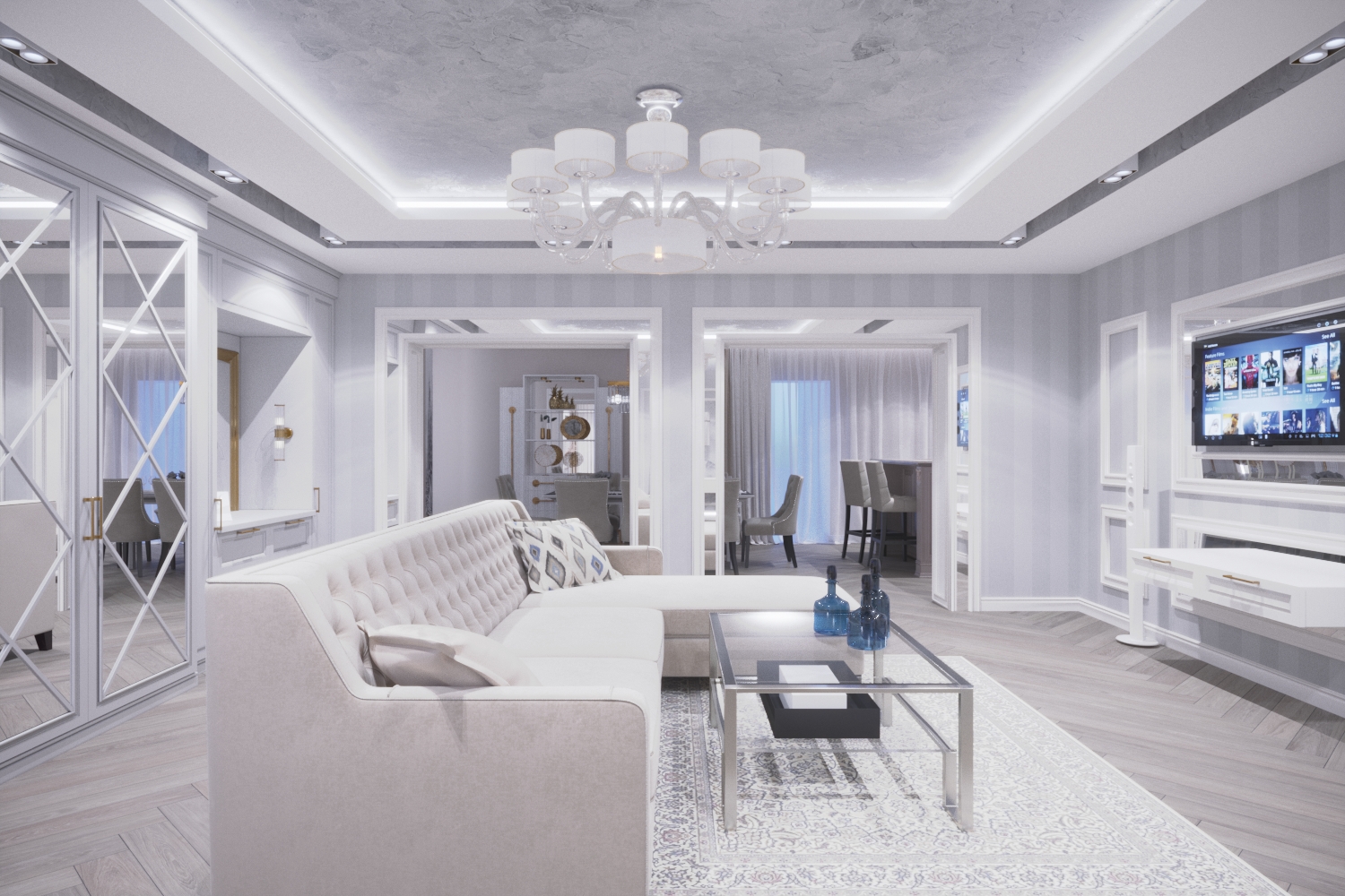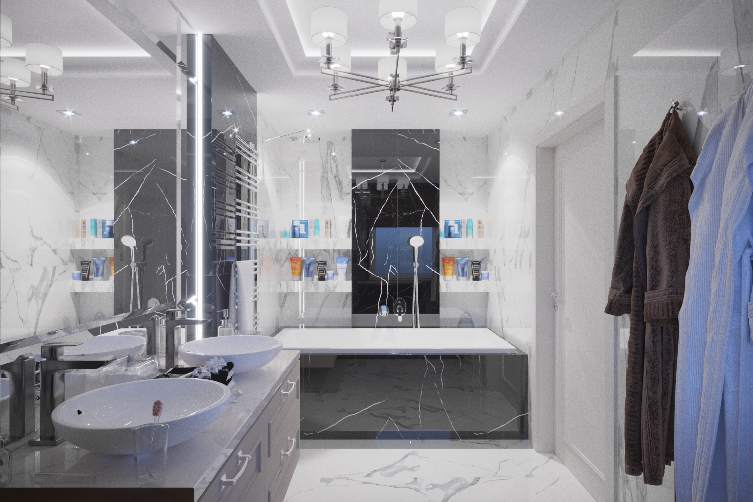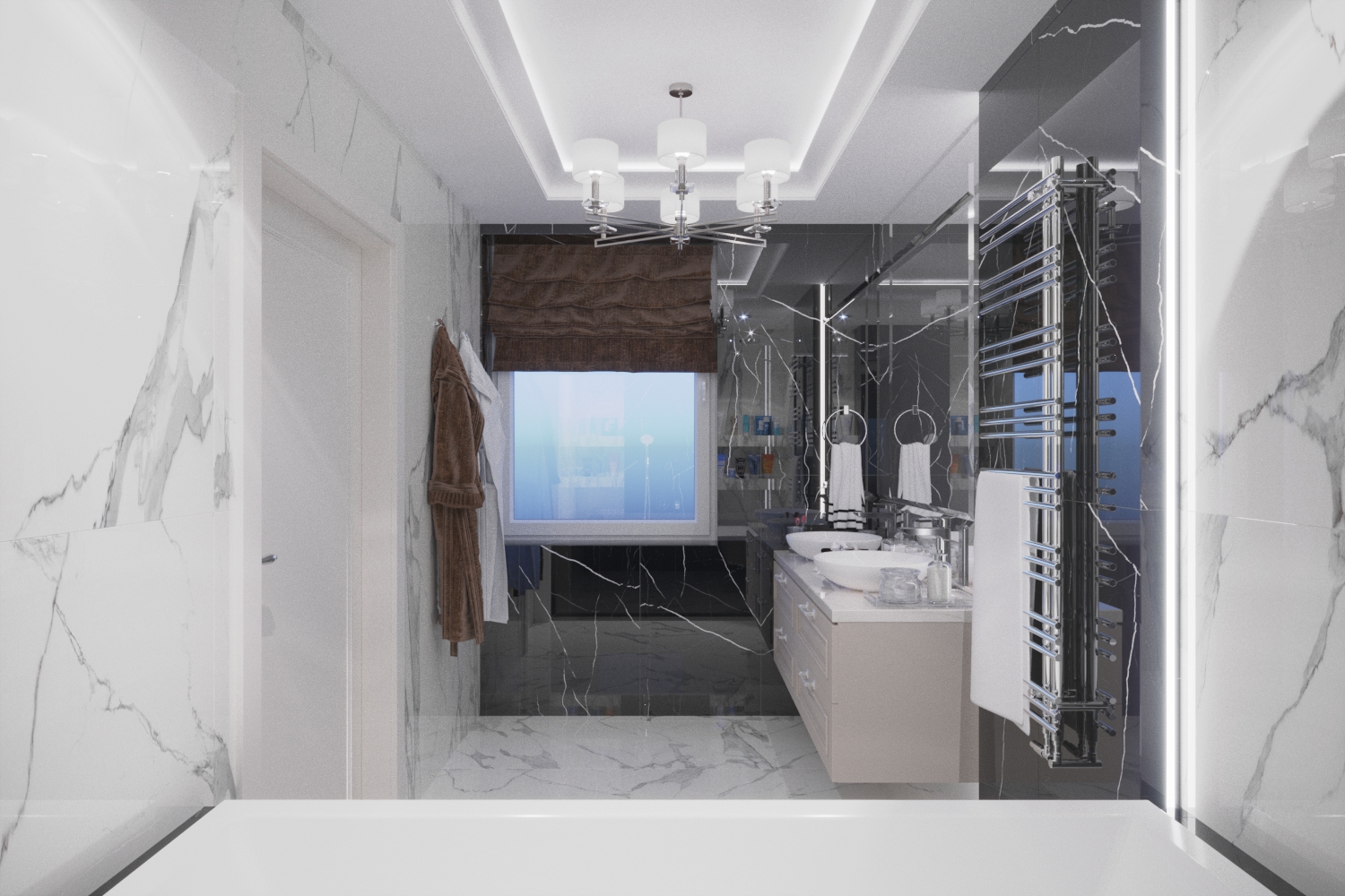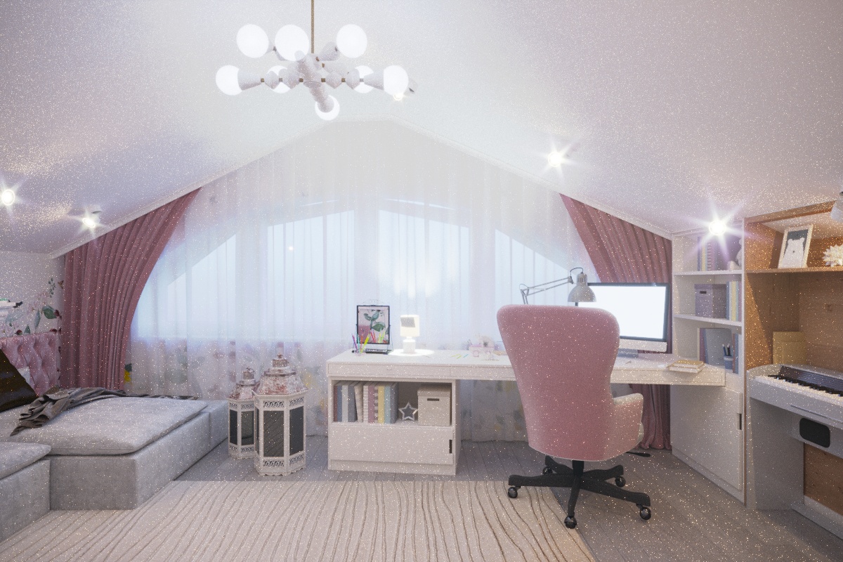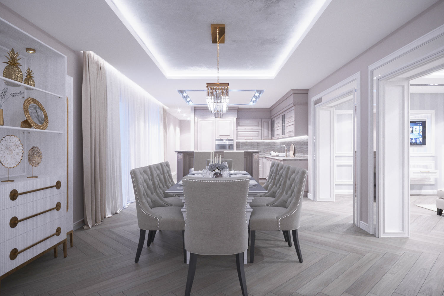 This renovation project gave a private house a new life with a redesigned attic floor. The interior embraces modern classic style with accent wallpapers, ceiling and wall lighting, and a carefully curated decorative palette. The result is a sophisticated and comfortable home that balances tradition and modernity.