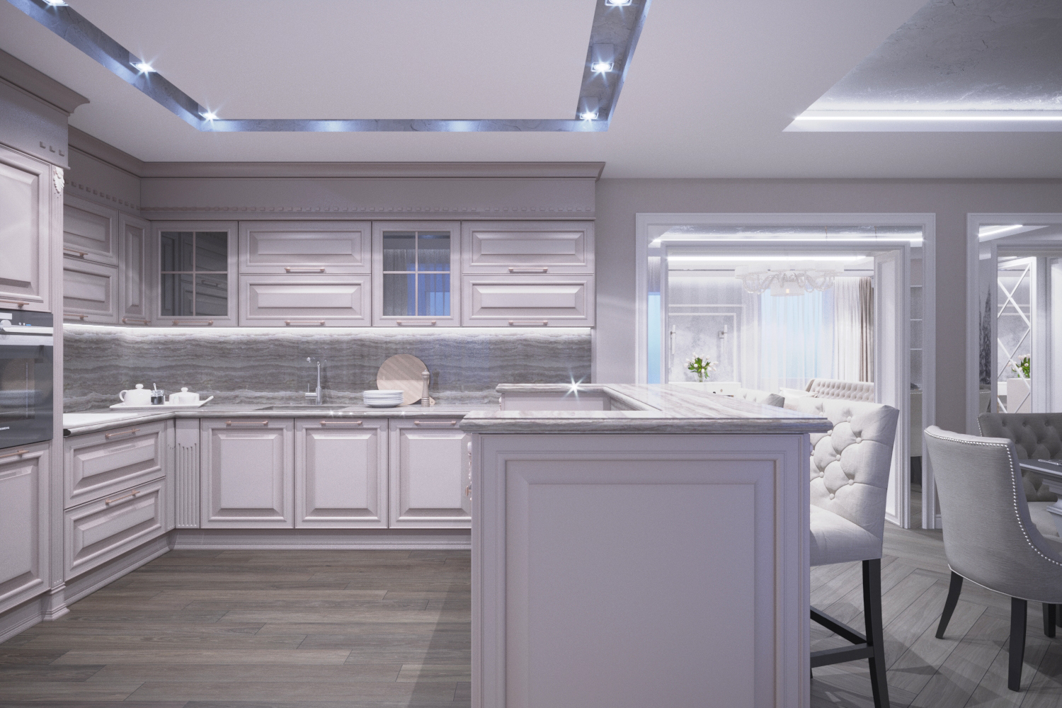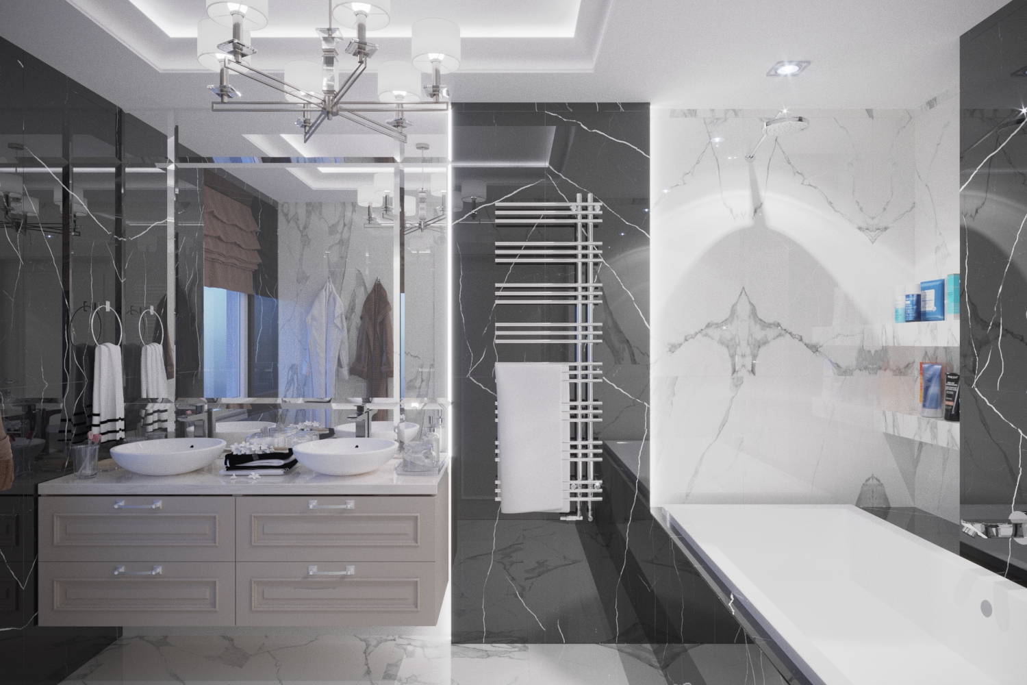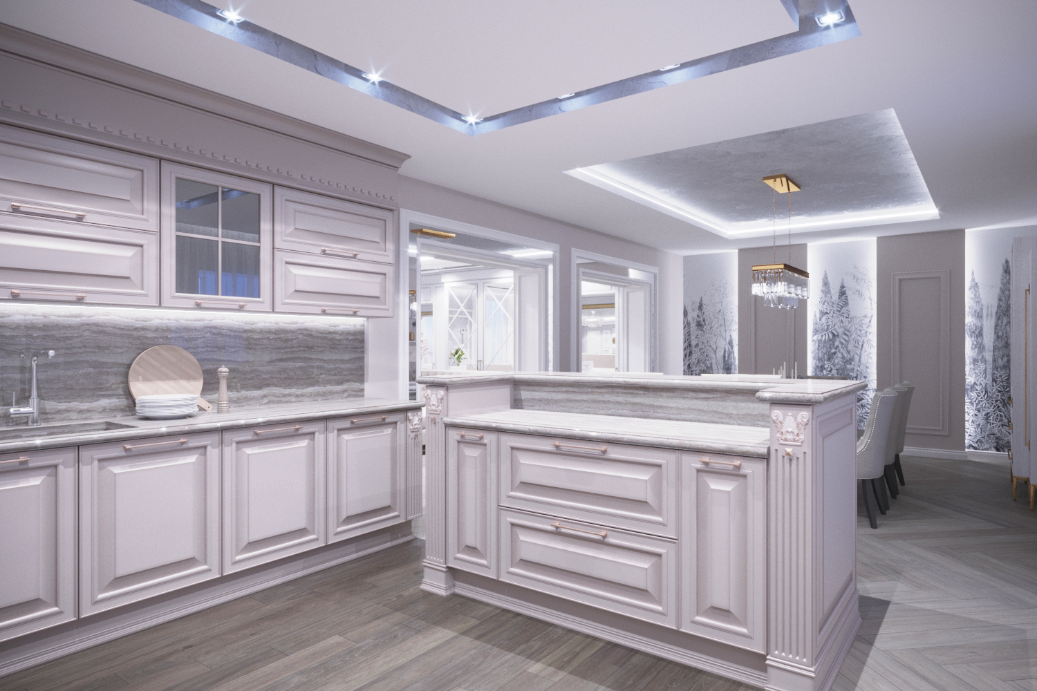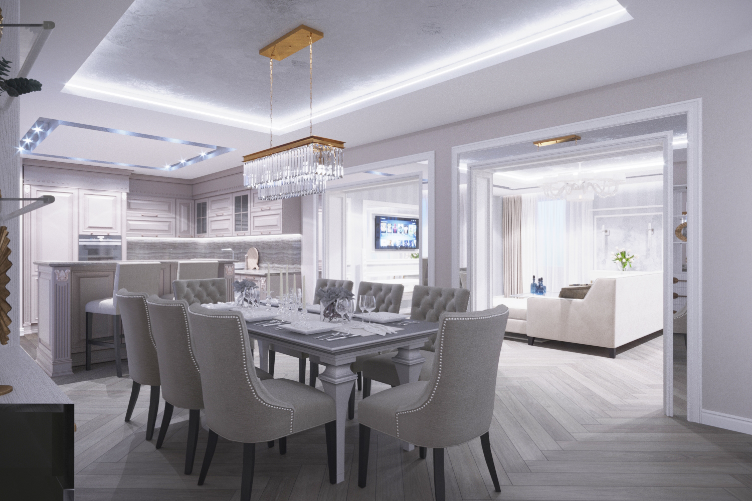 This renovation project gave a private house a new life with a redesigned attic floor. The interior embraces modern classic style with accent wallpapers, ceiling and wall lighting, and a carefully curated decorative palette. The result is a sophisticated and comfortable home that balances tradition and modernity.